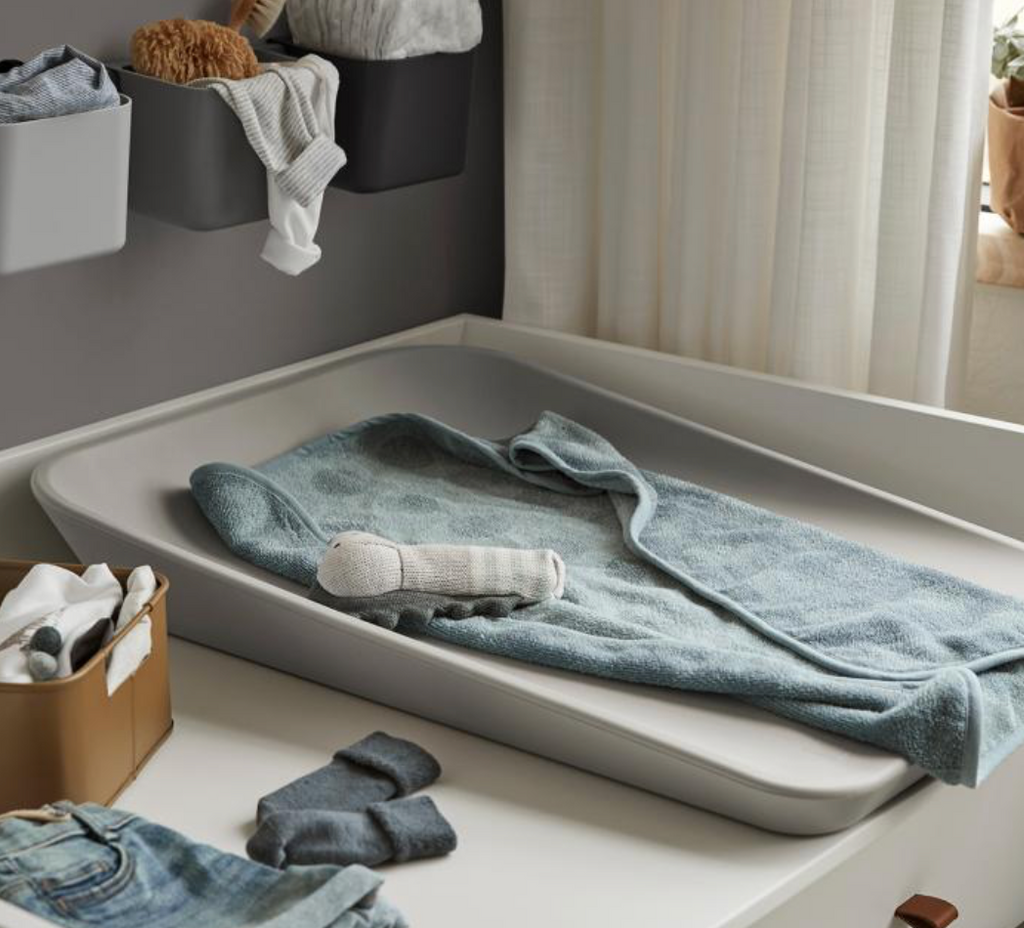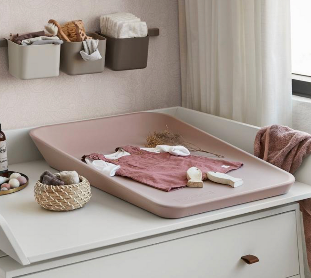 Le matelas à langer a une base fixe, que vous pouvez facilement placer là où vous en avez besoin, par exemple sur une commode. La surface est résistante à l'eau et exempte de perturbateurs endocriniens.