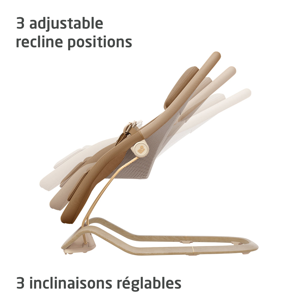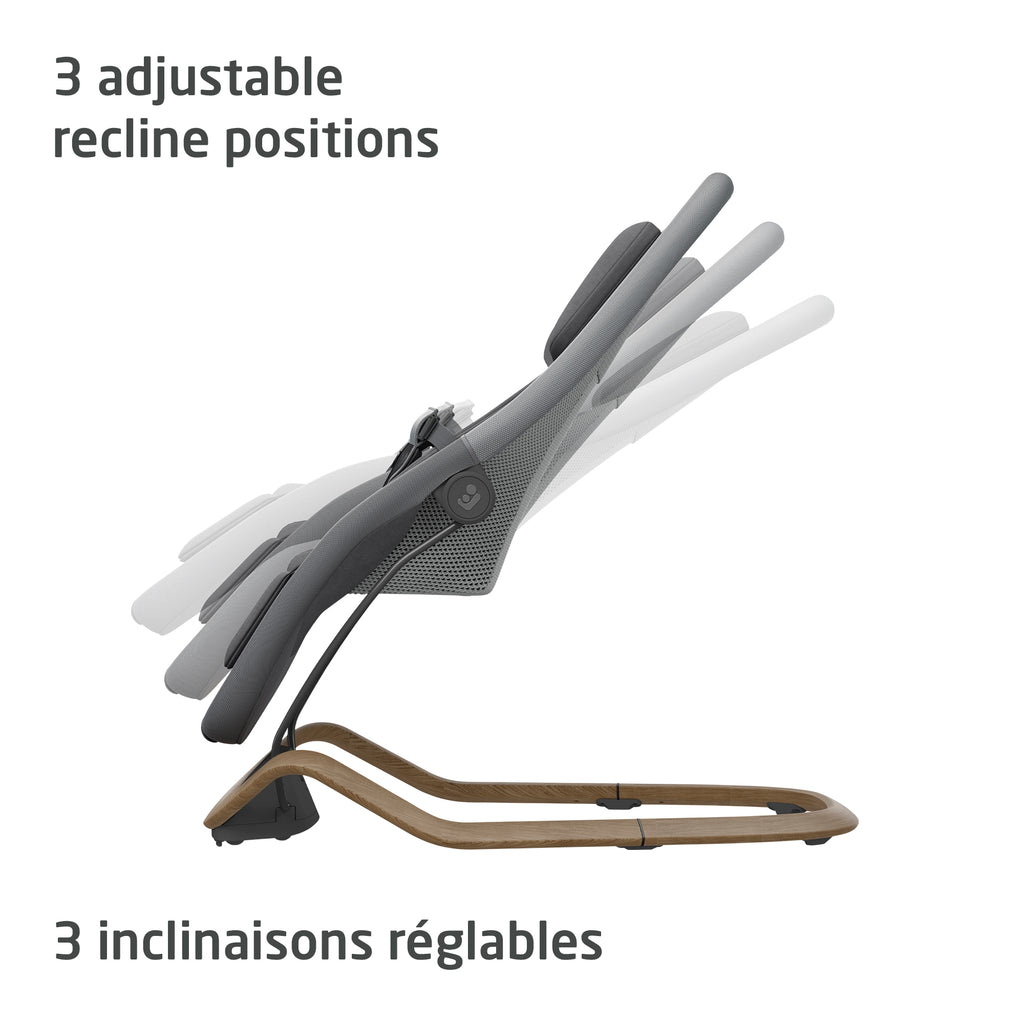 Le transat vibrant Maxi-Cosi Dove Pro allie design moderne et fonctionnalité apaisante, offrant à votre bébé l'espace idéal pour jouer, se reposer et se détendre. Grâce à ses rebonds doux et naturels, alimentés par les mouvements de votre enfant et au confort accru des vibrations CloudSoft™, ce transat apaise et divertit bébé tout au long de la journée.