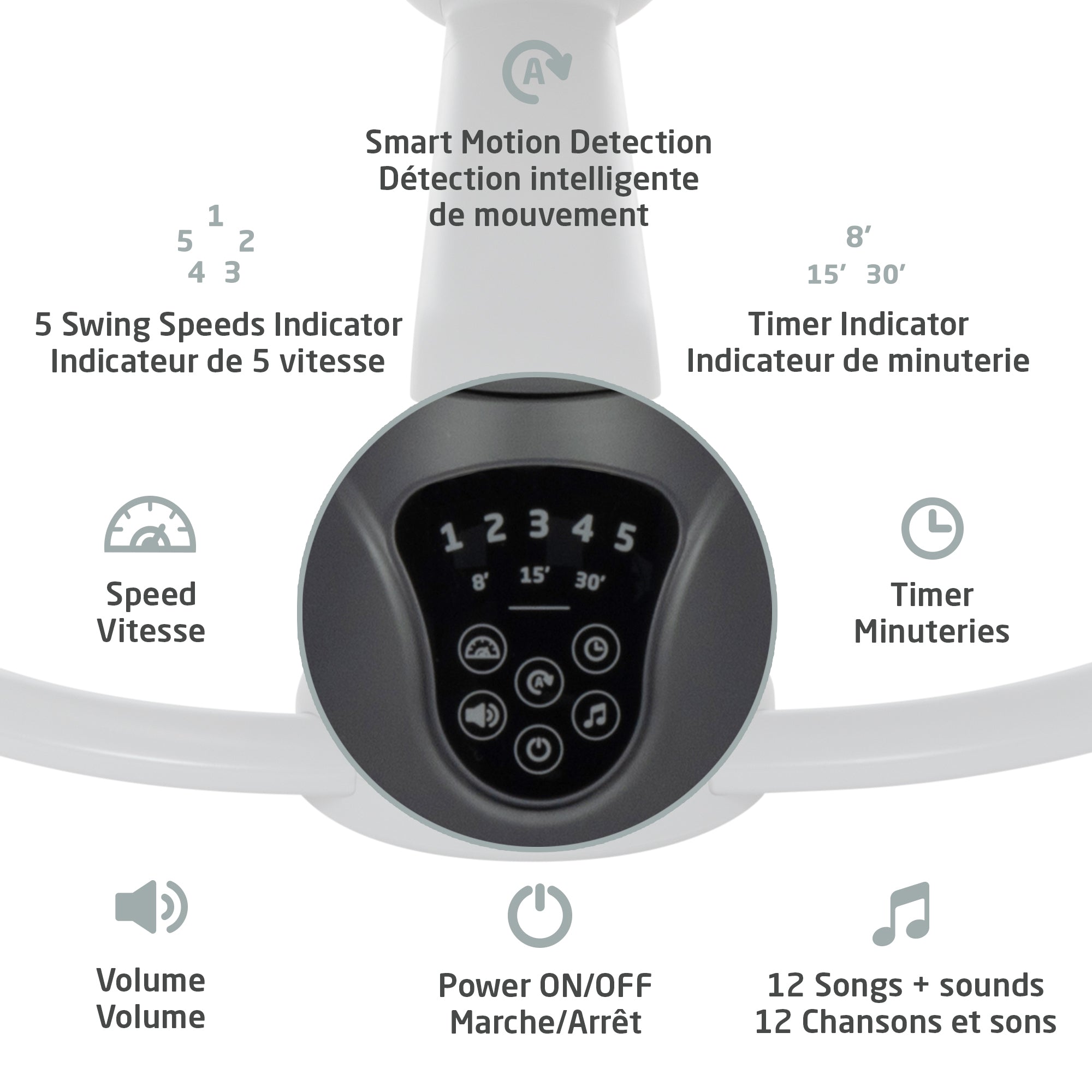 • 12 soothing melodies + nature sounds