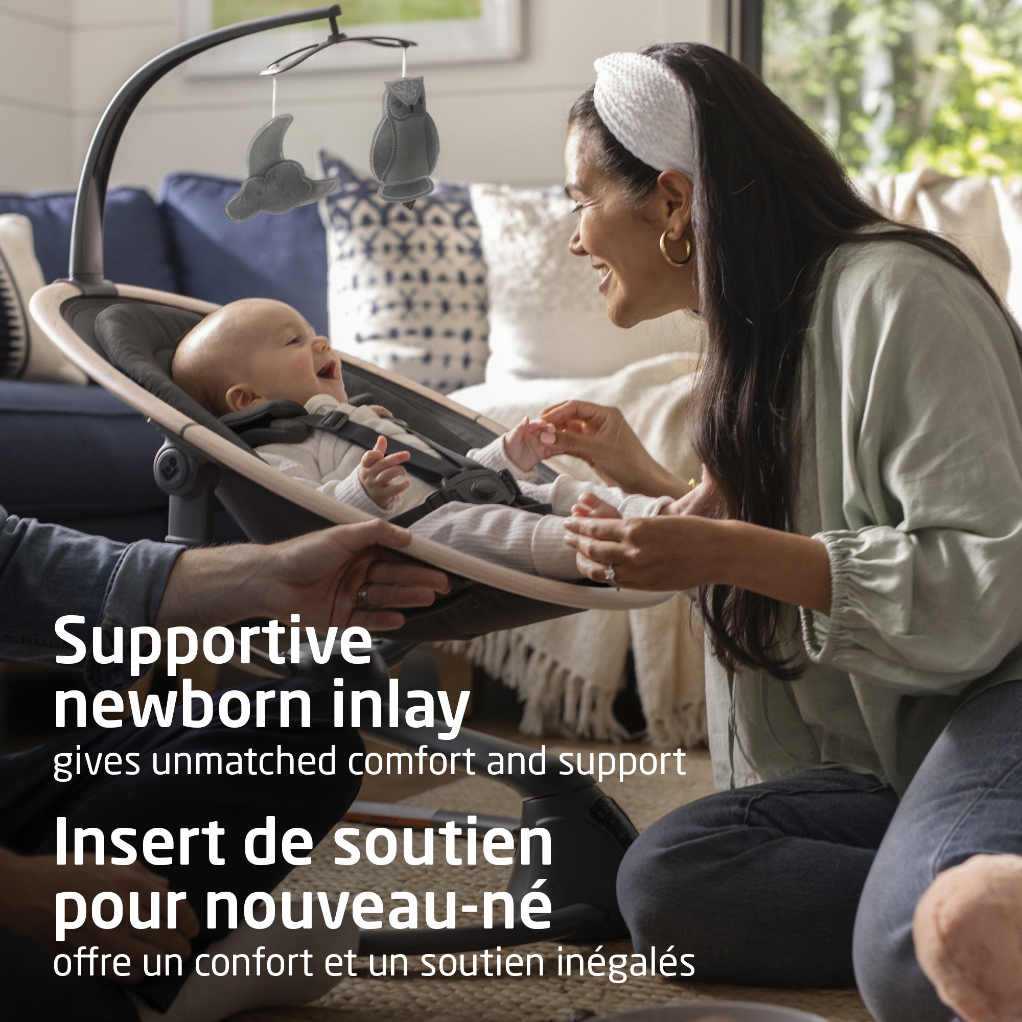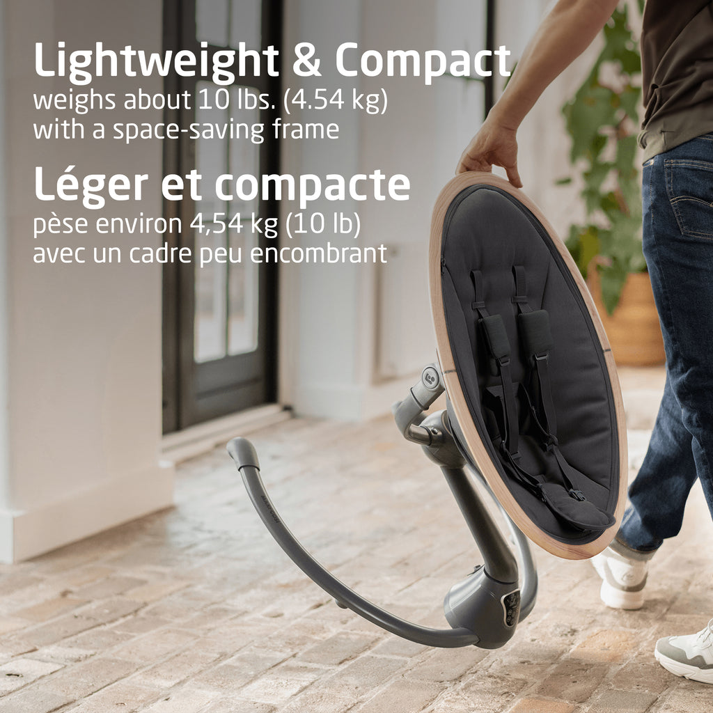Its 360⁰ rotation helps you maintain eye contact with your baby – because we know you can never take your eyes off of them. From the living room to the home office and back, you can easily take Cassia with you. Not only does it weigh about 10 pounds – less than the family cat – it also has a space-saving frame. And a stylish one at that.